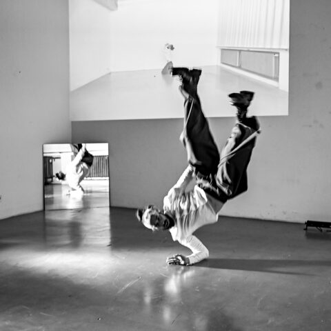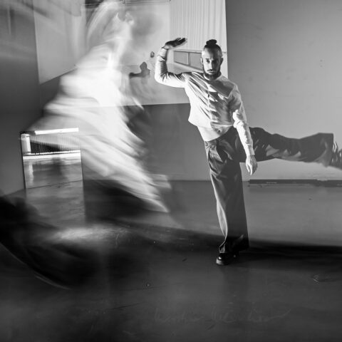In his introspective solo I Am Placebo, Michal Heriban explores the relativity of the present moment. He questions how memory, the subconscious, and habits influence our actions, our perception of ourselves, and the world around us. The intriguingly layered stage design—featuring a projection screen, a mirror, and shirts hanging on the wall—creates an impression of a multidimensional reality, a space where we can glimpse the past, be alone with ourselves, and dare to reveal our true selves—whether genuinely or only seemingly. In this dynamic and physically demanding choreography, precise and structured movements alternate with improvisation, mirroring life itself—if we can organize and reassess the past, we have a foundation to rely on when facing unexpected challenges in the present.