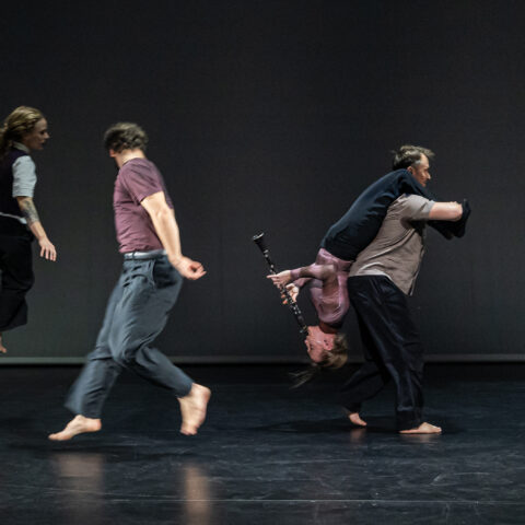 Walking Songs combines contemporary dance, live music, and visual projection into a unique artistic dialogue. Each medium contributes its own language to reveal the creators´ intentions, reflections, and emotions, translating them into metaphorical imagery. At times playful, at others urgent, they communicate the necessity of collaboration and free decision-making. The performance was created as a collective work and offers a unique insight into the possibilities of active perception – a play with body, space, time, silence, and words. It invites the audience to freely explore the infinite interconnections and the meanings that emerge from them. During the performance, both creators and performers intuitively respond to each other and to the dramaturgical structure, which allows them the freedom for creative decision-making in the present moment. Renowned Slovak dancers and dancers and exceptional Slovak musicians, dedicated to the open form of dance and music performance, collaborated on this production.